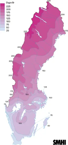 I Norrlandsfjällen och i övrigt i norra Lappland är marken snötäckt i medeltal drygt 200 dagar om året.