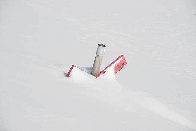 Mätpinne för snödjup vid SMHIs mätplats i Norrköping.